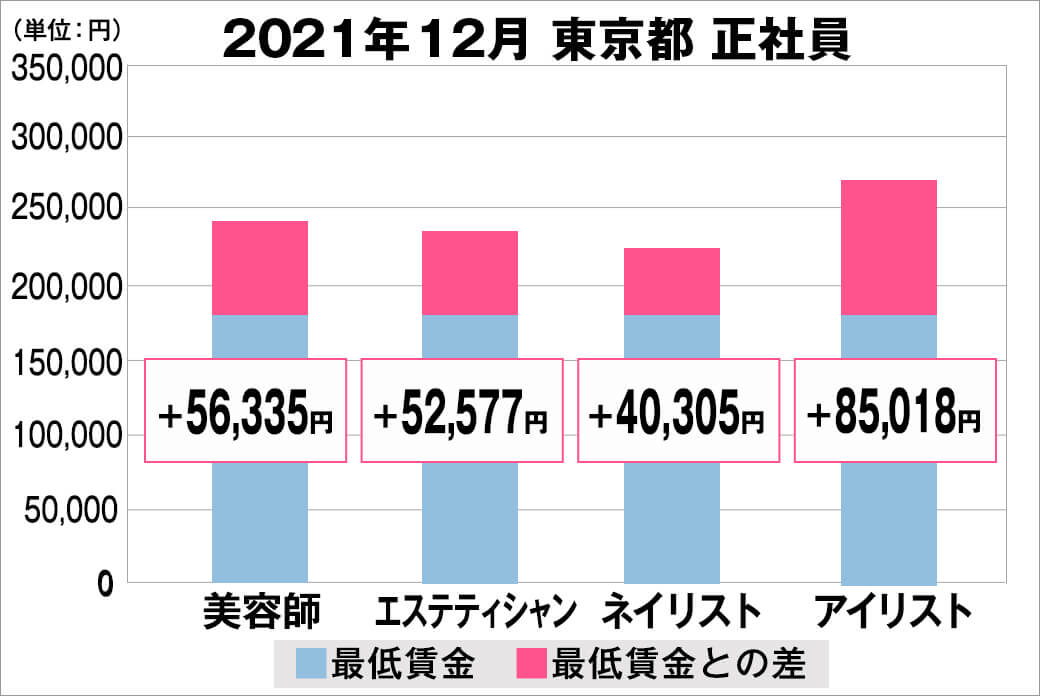 2021年12月における「最低賃金から見る美容業界の給料調査」を実施しました。 本調査は、美容業界専門の求人サイト『美プロ』に掲載されている求人募集時の給料を抽出し、職種別・雇用形態別・地域別の最低賃金との差を算出しました。