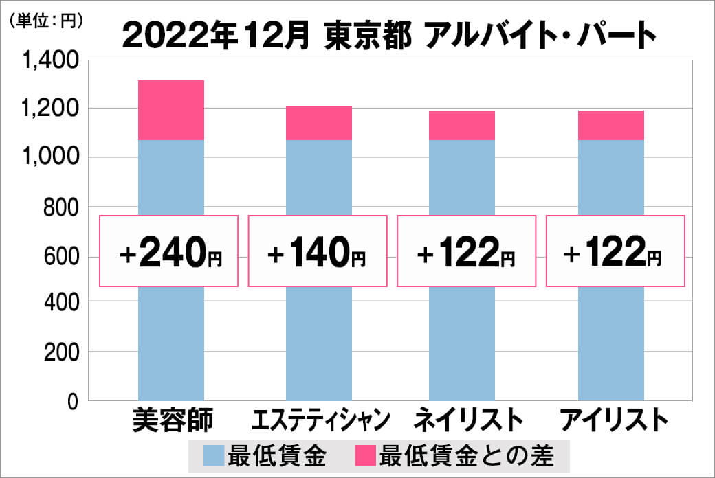 2022年12月における「最低賃金から見る美容業界の給料調査」を実施しました。 本調査は、美容業界専門の求人サイト『美プロ』に掲載されている求人募集時の給料を抽出し、職種別・雇用形態別・地域別の最低賃金との差を算出しました。