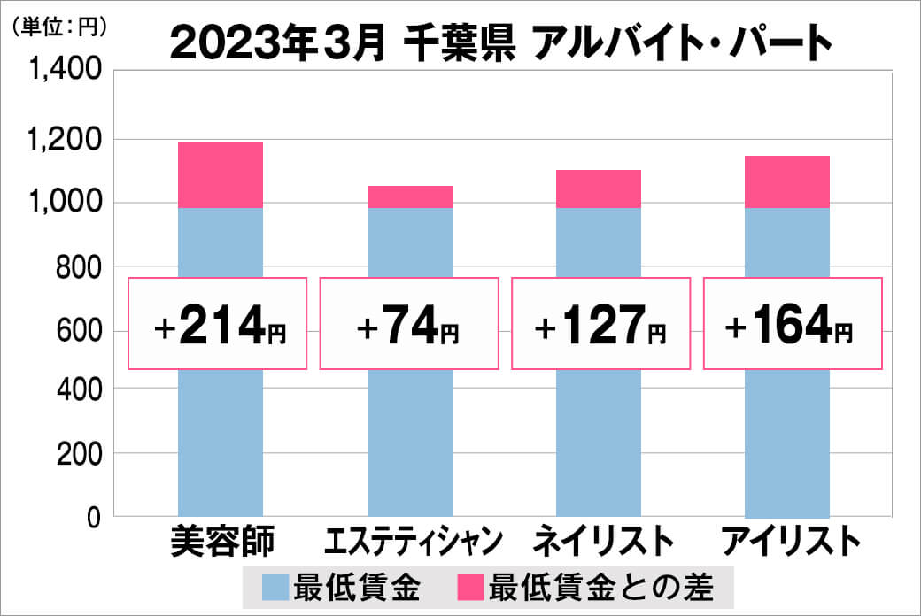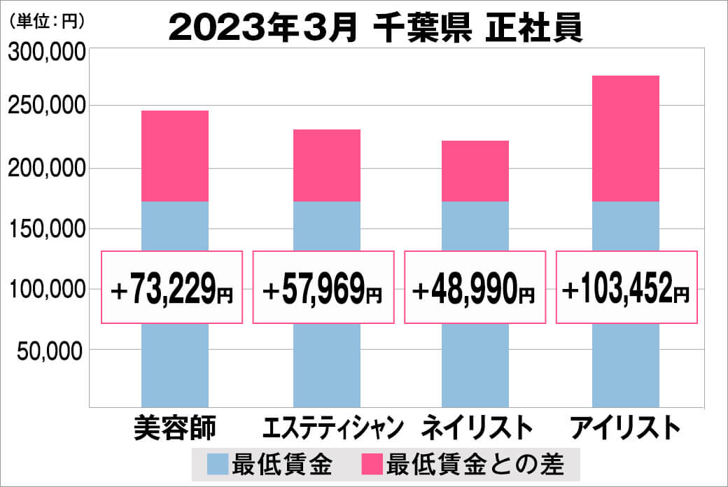 2023年3月時点で『美プロ』に掲載されている「千葉県」の「美容師・エステティシャン・ネイリスト・アイリスト」求人における「正社員」「アルバイト・パート」の給料を抽出。