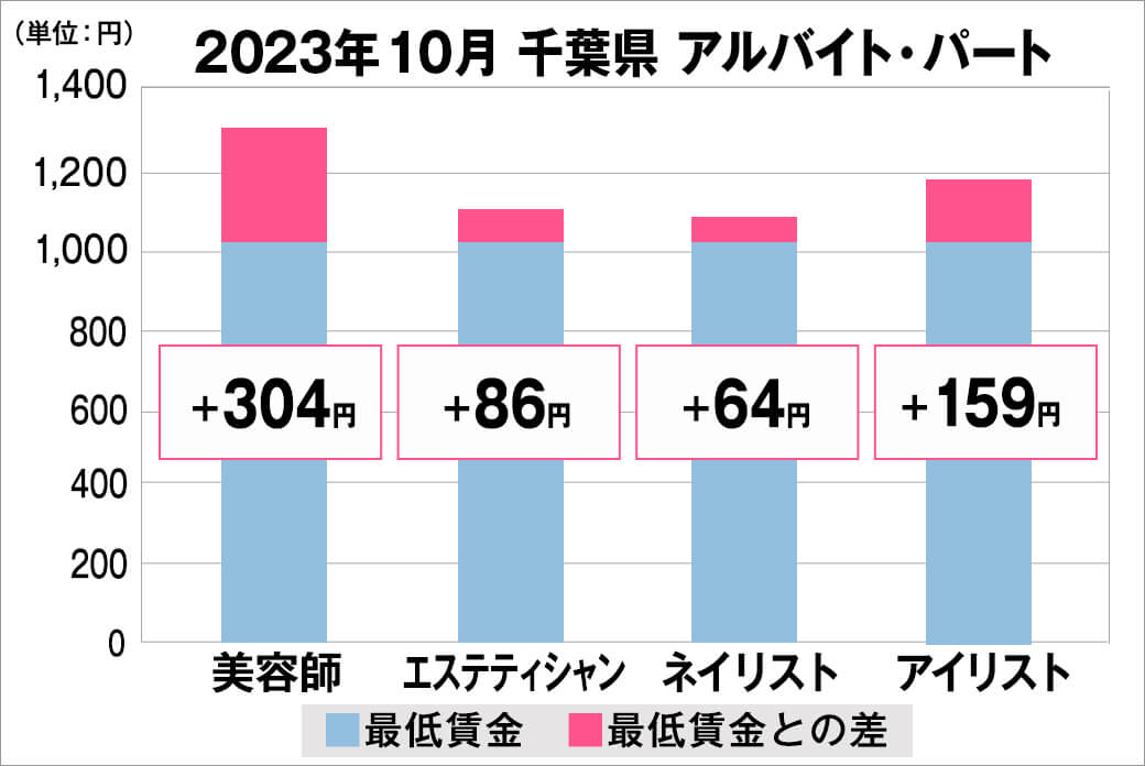 2023年10月時点で『美プロ』に掲載されている「千葉県」の「美容師・エステティシャン・ネイリスト・アイリスト」求人における「正社員」「アルバイト・パート」の給料を抽出。