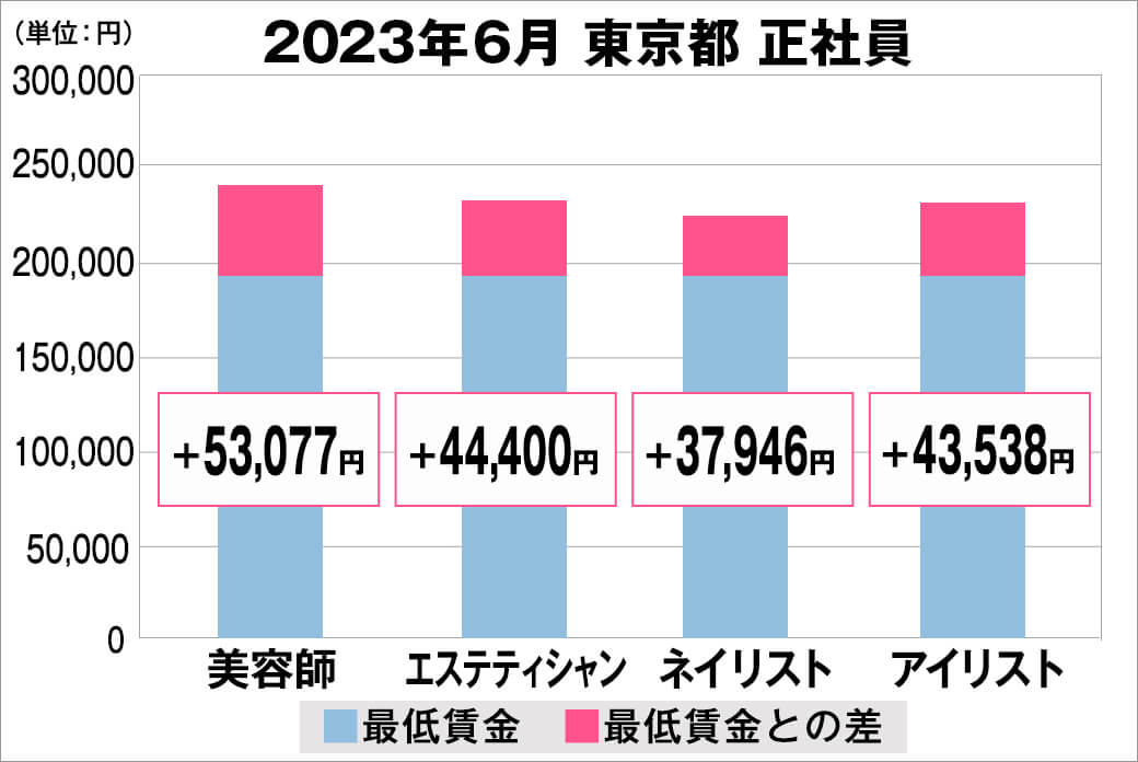 2023年6月における「最低賃金から見る美容業界の給料調査」を実施しました。 本調査は、美容業界専門の求人サイト『美プロ』に掲載されている求人募集時の給料を抽出し、職種別・雇用形態別・地域別の最低賃金との差を算出しました。