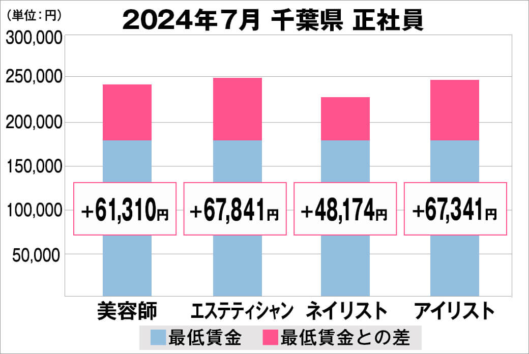 2024年7月時点で『美プロ』に掲載されている「千葉県」の「美容師・エステティシャン・ネイリスト・アイリスト」求人における「正社員」「アルバイト・パート」の給料を抽出。
