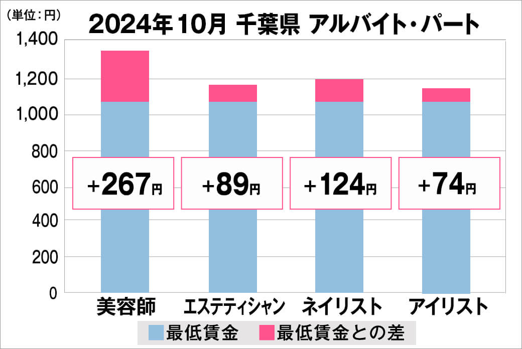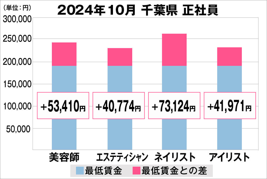 2024年10月時点で『美プロ』に掲載されている「千葉県」の「美容師・エステティシャン・ネイリスト・アイリスト」求人における「正社員」「アルバイト・パート」の給料を抽出。