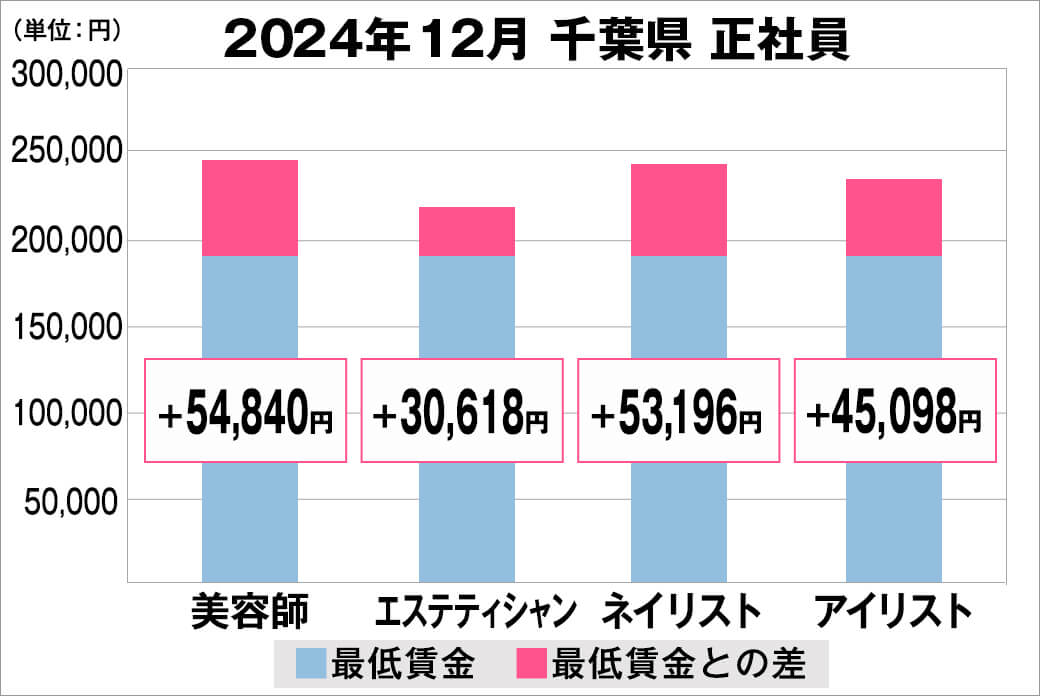 2024年12月時点で『美プロ』に掲載されている「千葉県」の「美容師・エステティシャン・ネイリスト・アイリスト」求人における「正社員」「アルバイト・パート」の給料を抽出。