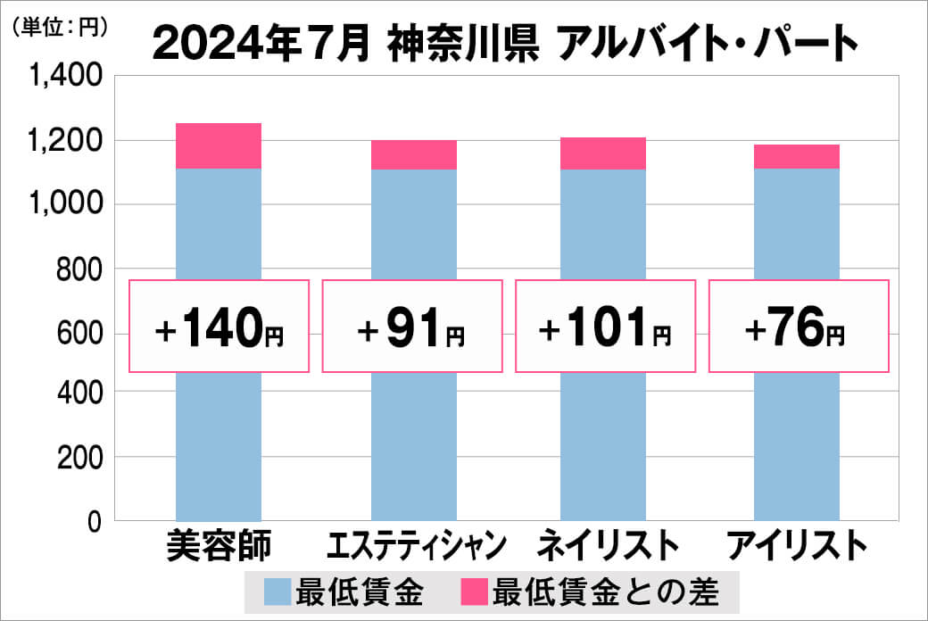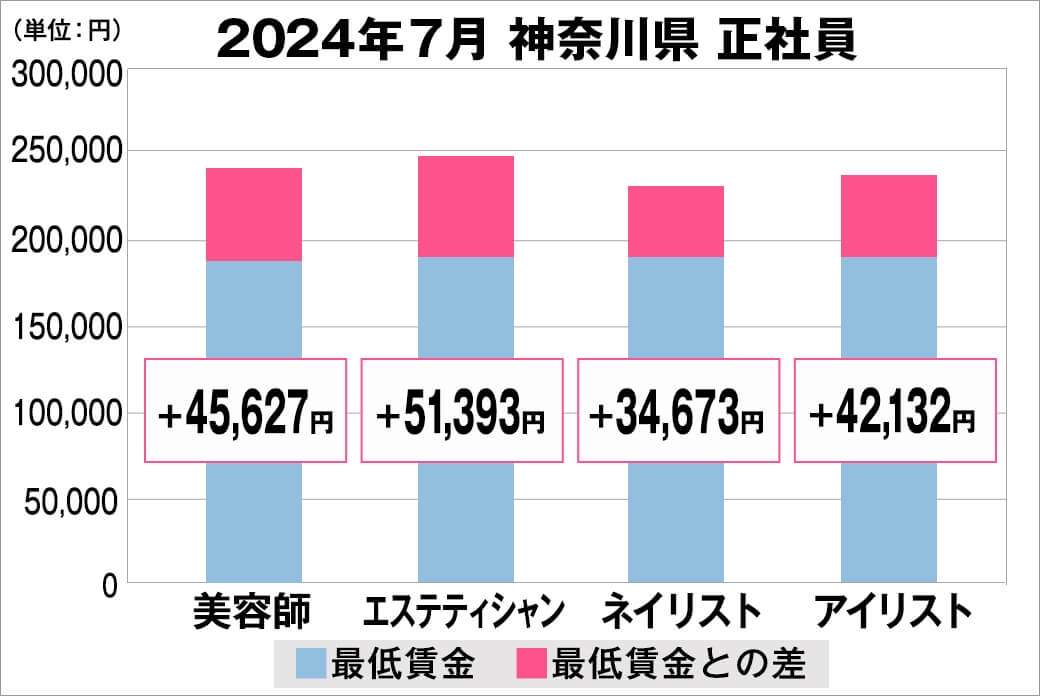 2024年7月時点で『美プロ』に掲載されている「神奈川県」の「美容師・エステティシャン・ネイリスト・アイリスト」求人における「正社員」「アルバイト・パート」の給料を抽出。