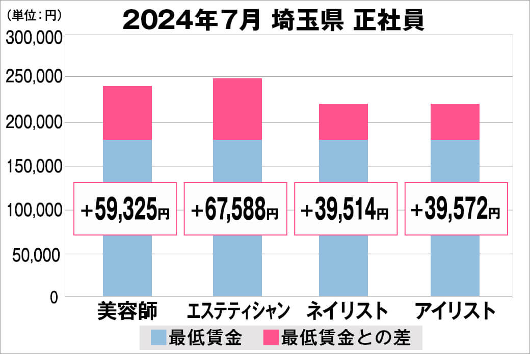 2024年7月時点で『美プロ』に掲載されている「埼玉県」の「美容師・エステティシャン・ネイリスト・アイリスト」求人における「正社員」「アルバイト・パート」の給料を抽出。