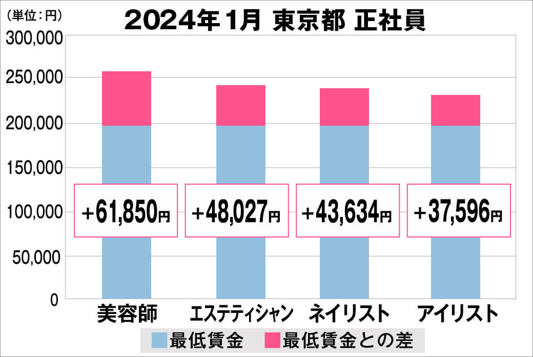 2024年1月における「最低賃金から見る美容業界の給料調査」を実施しました。 本調査は、美容業界専門の求人サイト『美プロ』に掲載されている求人募集時の給料を抽出し、職種別・雇用形態別・地域別の最低賃金との差を算出しました。
