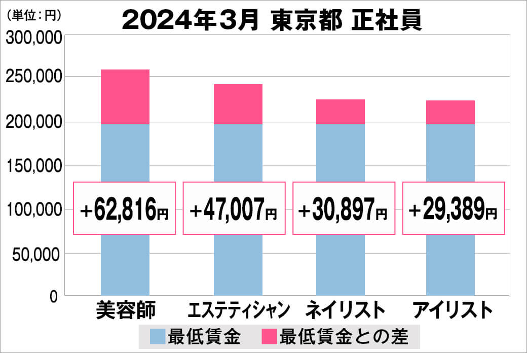 2024年3月における「最低賃金から見る美容業界の給料調査」を実施しました。 本調査は、美容業界専門の求人サイト『美プロ』に掲載されている求人募集時の給料を抽出し、職種別・雇用形態別・地域別の最低賃金との差を算出しました。