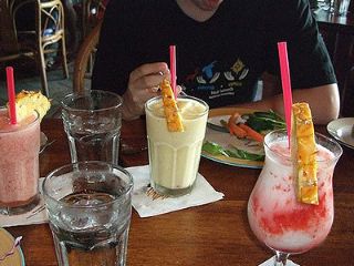 まずはバナナを1本を適当に切って、200㏄程の豆乳を入れてミキサーにかければ完成です。