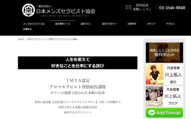 では男性がセラピストになるには、具体的にどのような方法があるのでしょうか? たとえば確かな技術を身につけたい人は、一般社団法人 日本メンズセラピスト協会(JMTA)が発行している「認定アロマセラピスト」という資格を取得するのもおすすめ。
