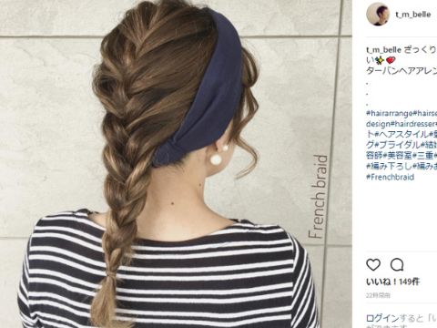 また、ロングヘアの人なら全体を編み込みにし、毛先に近い部分をゴムで留めればOK。シャープな印象に見せたい時はきっちりめ、ガーリーなふんわり感を出したい時にはゆるく結ぶといいですよ。ターバンなどと組み合わせるのもオシャレ度がアップするのでおススメ。