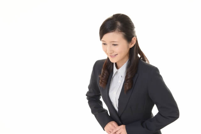 椅子に浅く腰をかけ、お辞儀は丁寧に行ないます。素早く頭を下げたら、一旦停止すると良いですよ。頭を下げてから顔を上げるまでの一連動作を流れるように行なってしまえば、お辞儀をしたことすらわからない場合もあります。きちんと丁寧にお辞儀をするようにしましょう。案外、お辞儀の印象で相手に与える印象も変わるものですよ。
