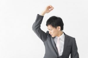 無臭の汗が皮膚の皮脂や雑菌と混ざることで臭いが放出されることによって、体が臭います。