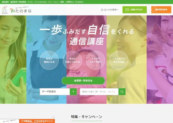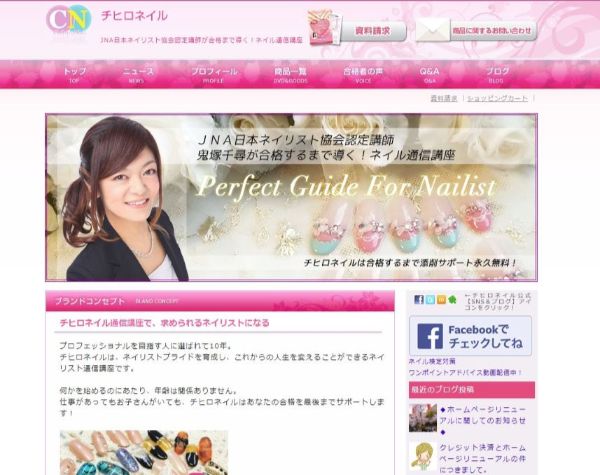 トップネイリスト鬼塚千尋の通信講座「チヒロネイル」。鬼塚さん本人による添削指導もあり、1級合格まで質問回数無制限です。質問期間も制限なしでいつでも無料サポートが受けられるのが魅力です。また、ディプロマ試験に合格すると、認定書の発行に加え、指定の問屋でネイル用具の購入が可能になります。