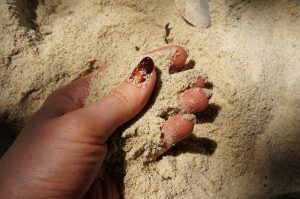 - 赤茶色のカラージェルをランダムにのせていきます。