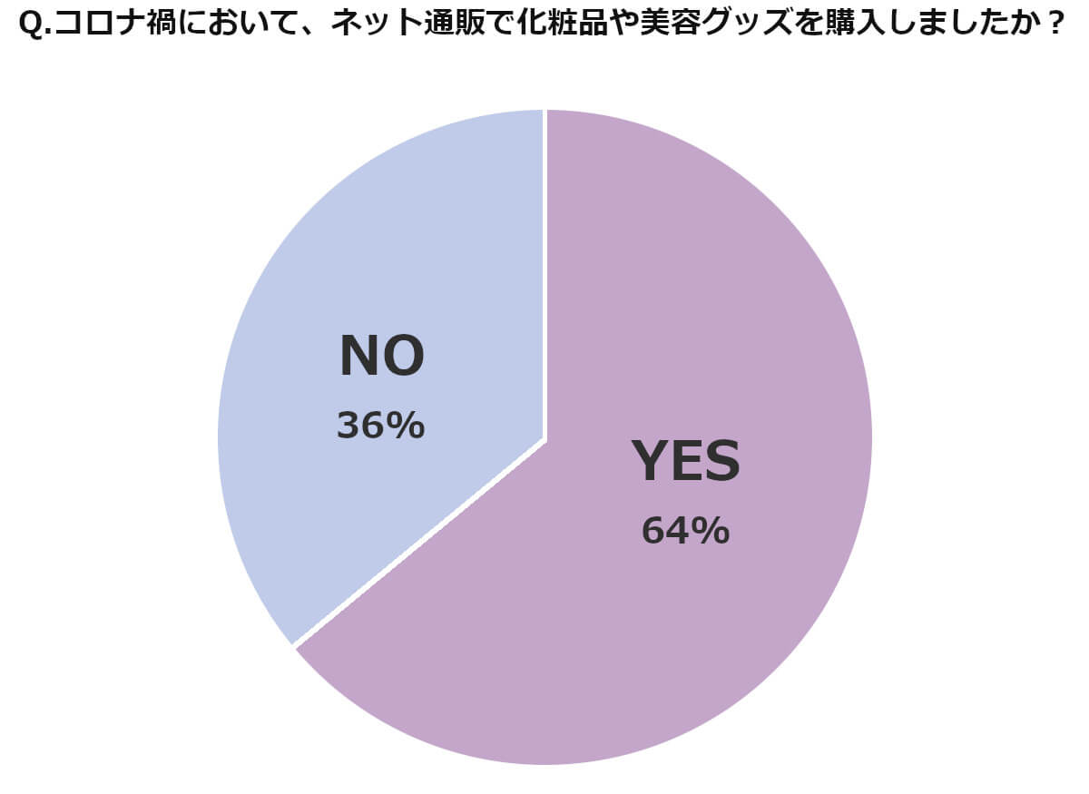 全体の約64%の人が「はい」という回答。今や、肌に直接つける化粧品でさえインターネットで購入する人が半数以上を占めているのですね。