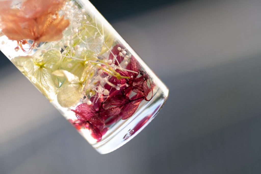 価格で考えるとミネラルオイルの方が安価となるようです。また、前述したように比重が水より軽いミネラルオイルの方がお花も浮きにくく作りやすいのです。屈折率の高さは、ハーバリウムに光を閉じ込めて明るく見せるかどうかという事。こちらもミネラルオイルの方が美しく見せられるようですね。しかし、シリコンオイルの最大のメリットとして流動点の低さにあり、寒冷地に輸送する場合などに白濁の恐れがないという事なのです。寒い土地でのハーバリウム作りやプレゼントとして贈る場合には、シリコンオイルを使うと安心です。ミネラルオイルでも常温に戻ると元の状態に戻りますが、その辺りも加味してオイルを選んでみてくださいね。
